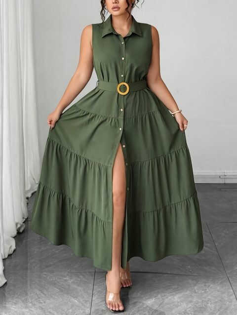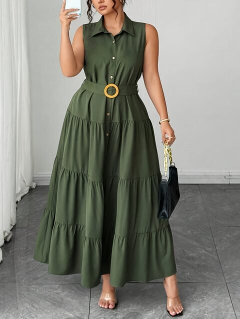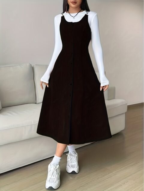 Women’S Sleeveless Button- Long Strap Dress YY0717055