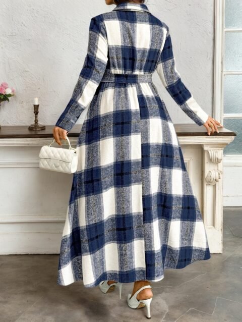 Elegant Women’S A-Line Dress with Three-Quarter Sleeves And a Lapel Collar