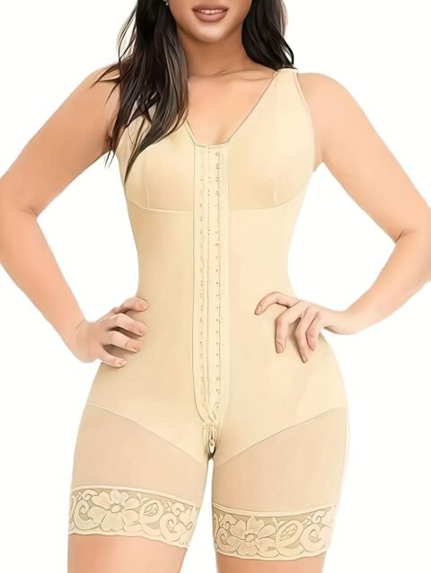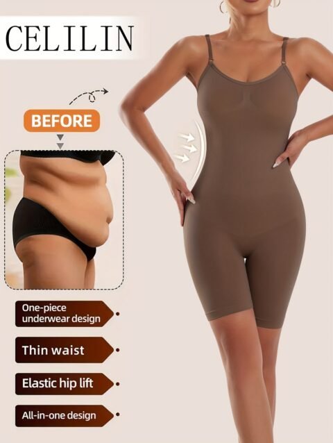 1pc Compression Workout Bodysuit: Seamless High-Waist Shaper with Full Back for Gym, Yoga & Casual Attire – Breathable & Supportive