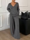 2pcs Women’s Spring/Autumn/Winter Long Sleeve Long Pants Open Front Pajama Set