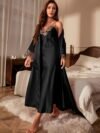 Add to cartElegant Solid Color Lace Panel Robe with Belt + Camisole Loungewear Set