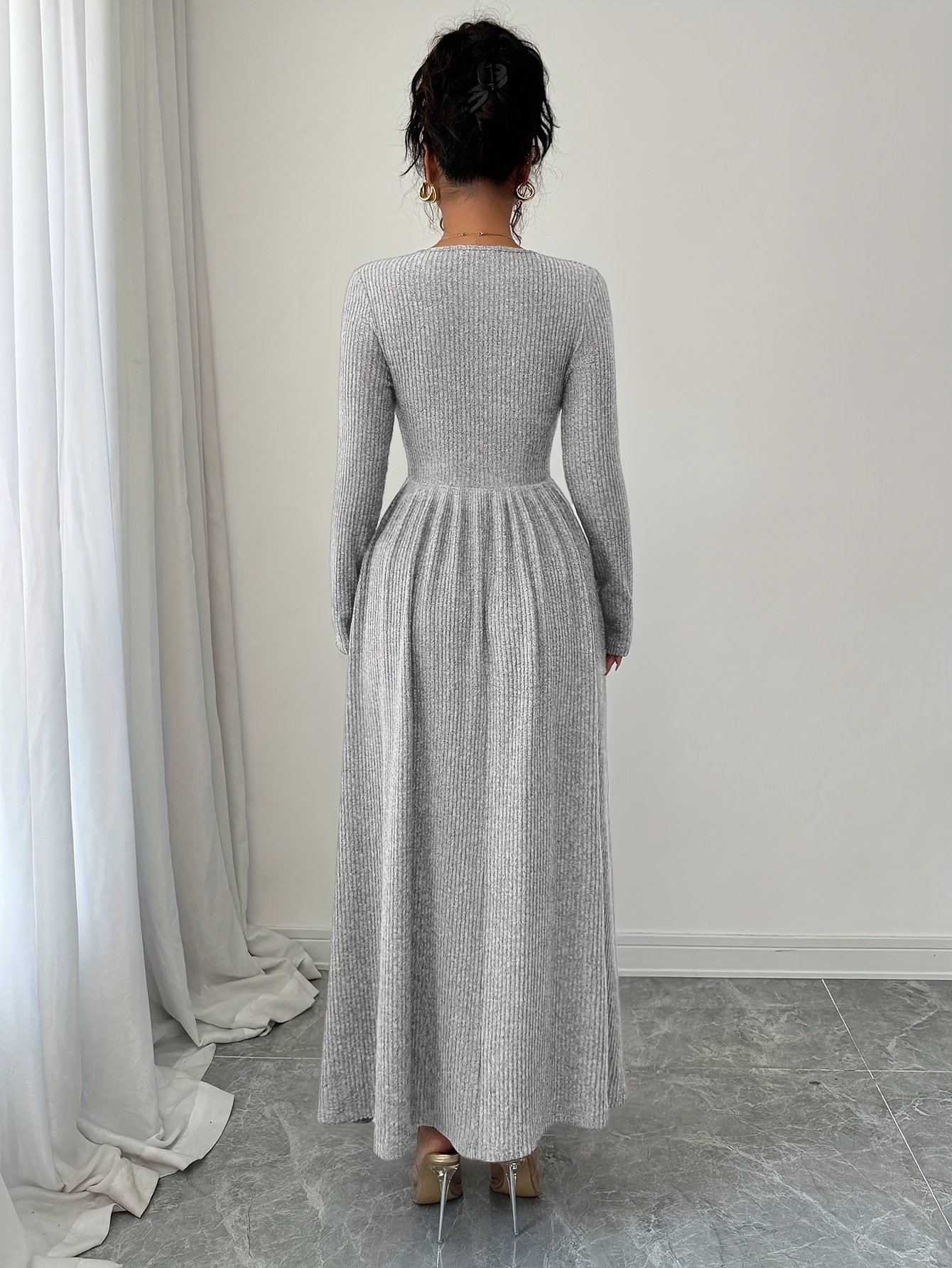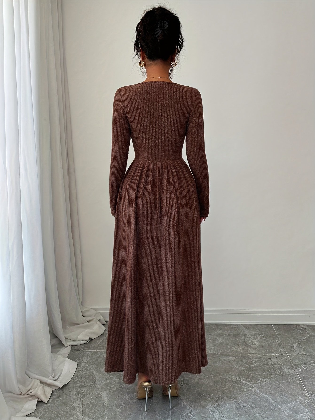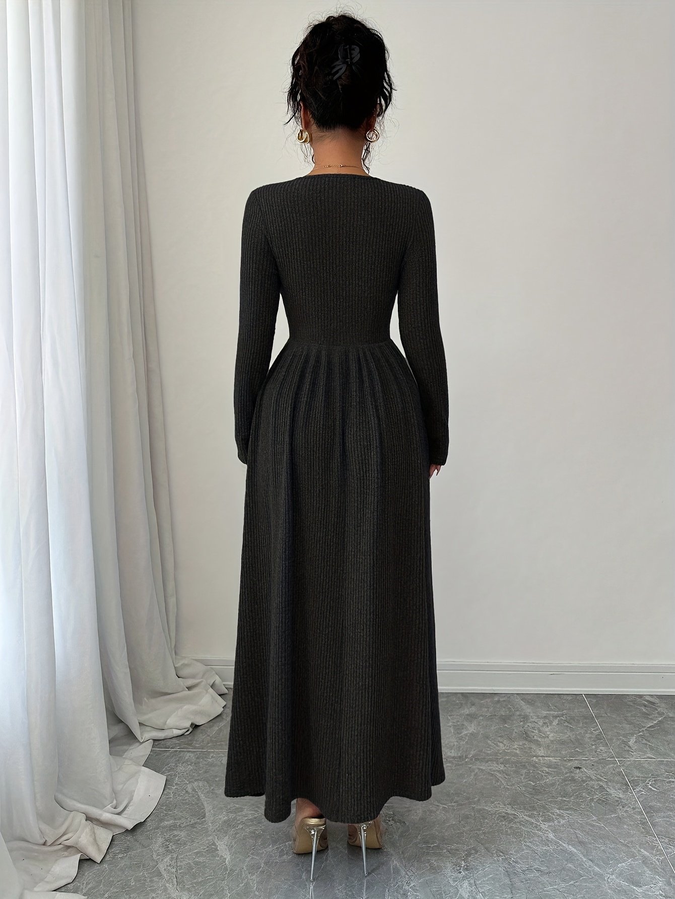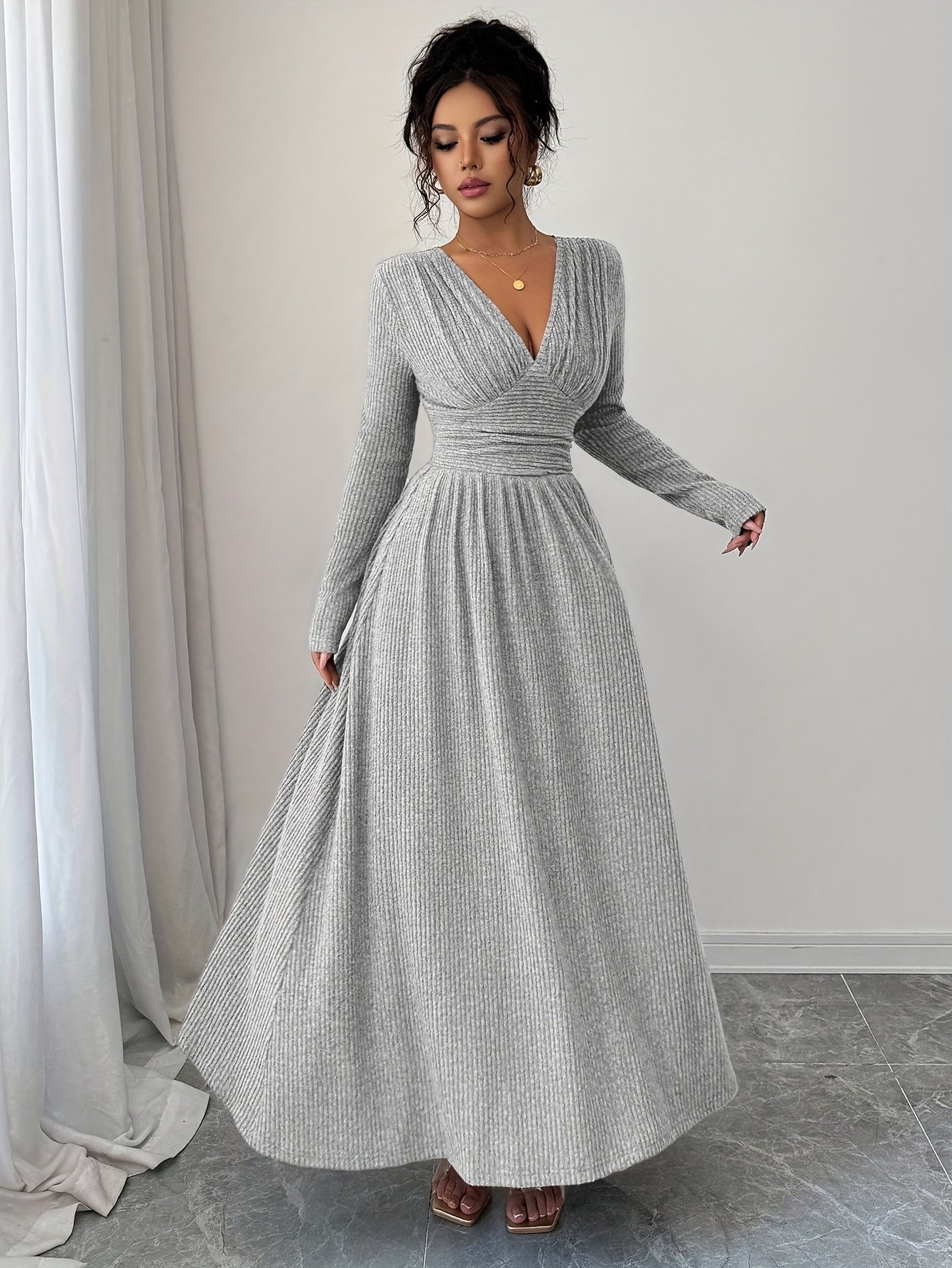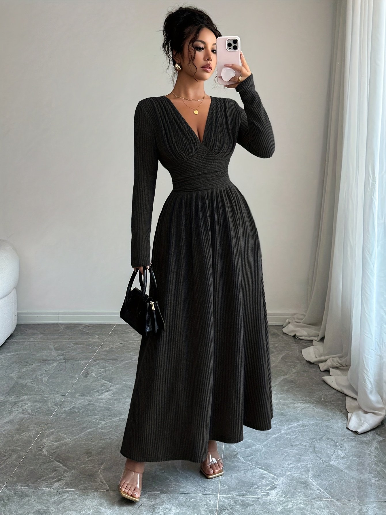 Add to cartLadies’ Fashion Elegant Dark-Colored New Autumn And Winter A-Line Dress with a Large Hem, Comfortable And Warm, Featuring a V-Neck And Fitted Long Sleeves