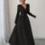 Ladies' Fashion Elegant Dark-Colored New Autumn And Winter A-Line Dress with a Large Hem, Comfortable And Warm, Featuring a V-Neck And Fitted Long Sleeves