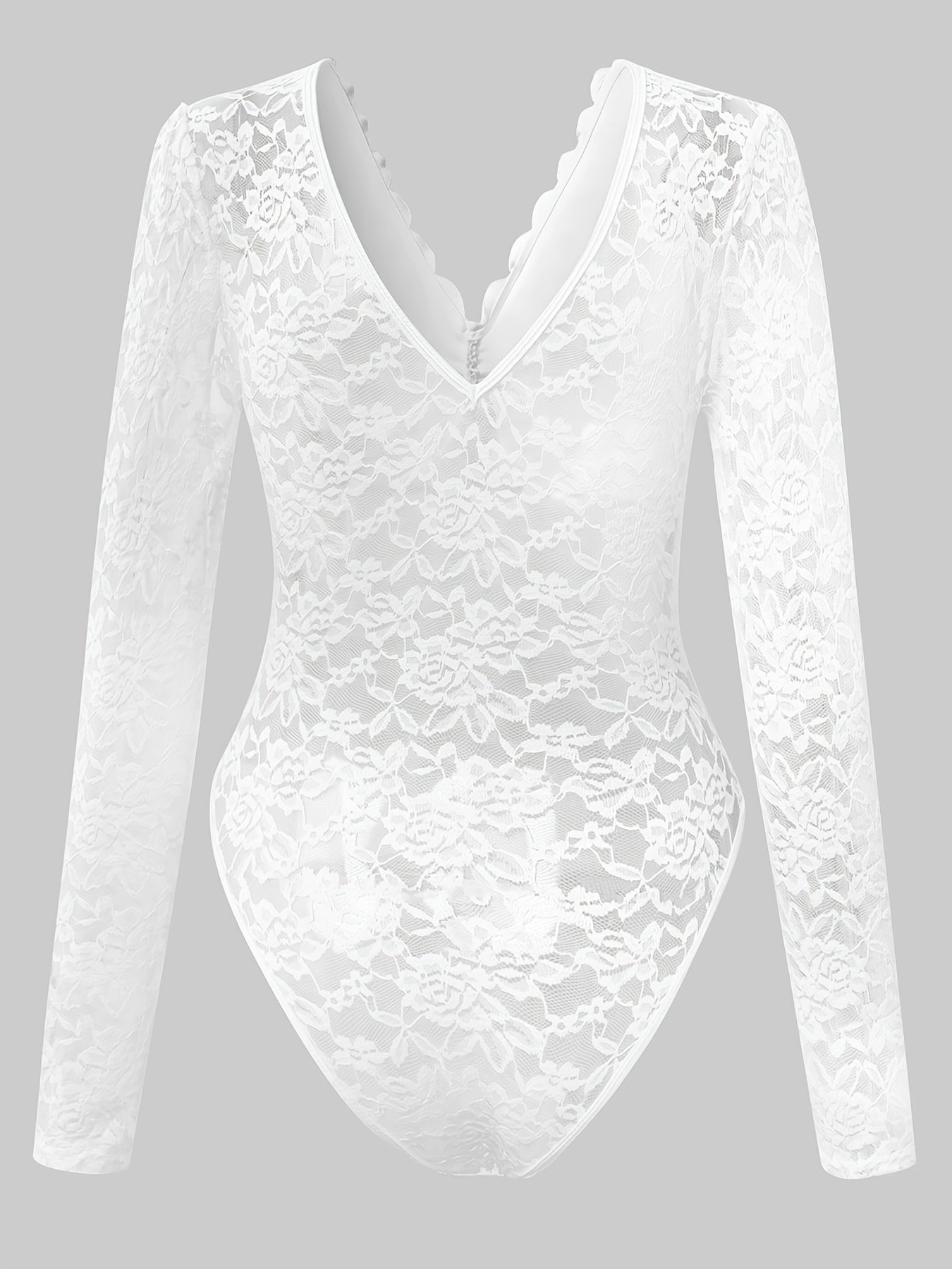 Add to cartSexy Solid Color Lace Long Sleeved See-through Slim Bodysuit.