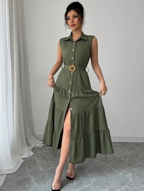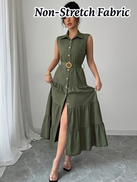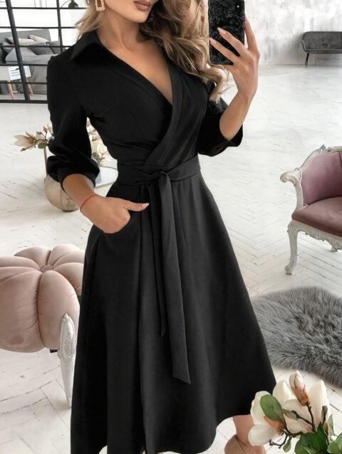 Elegant Women’S A-Line Dress with Three-Quarter Sleeves And a Lapel Collar