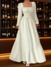 Ladies’ Fashion Elegant Dark-Colored New Autumn And Winter A-Line Dress with a Large Hem, Comfortable And Warm, Featuring a V-Neck And Fitted Long Sleeves